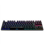 Tipo de teclado: mecánico, Tipo de switch: T-Dagger Red, son lineales, sin clic audible, y fuerza de activación 45 g, Teclas multimedia: si, a través de tecla FN. Teclas macro dedicadas: no. Bloqueo de tecla Windows: sí. Tamaño de teclado: tenkeyless (sin pad numérico). Reposamuñecas: no. Retroiluminado: sí, RGB Chroma. Cable: cable USB-A, PVC, a USB-C de 1,60 m, extraíble. Matriz: 100% anti-ghosting con full key rollover. Construcción: plástico ABS reforzado. Anti salpicaduras: sí Distribución: español.